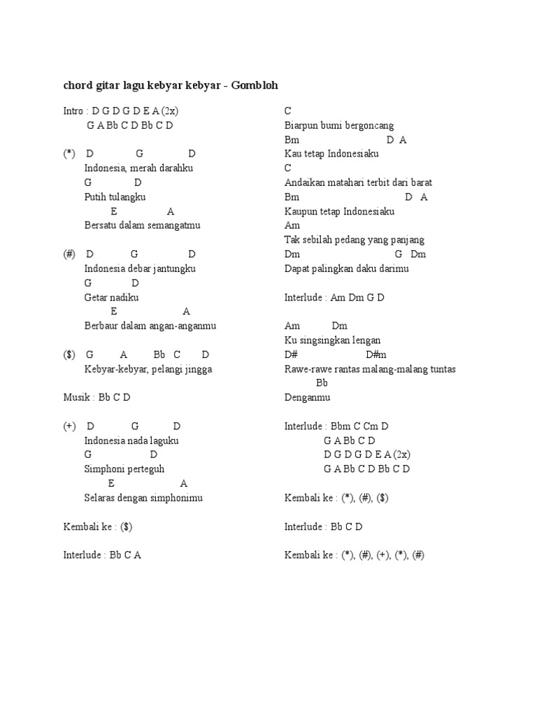 B E 2x B Hanya bilik bambu E Tempat tinggal kita B F Tanpa hiasan tanpa lukisan Gm Beratap jerami G beralaskan tanah B E F Namun semua itu punya kita B E F Memang semua ini milik kita B sendiri B Hanya alang-alang E Pagar rumah kita B F Tanpa anyelir tanpa melati Gm Hanya bunga bakung G tumbuh dihalaman B E F Namun semua itu punya kita B. A D E - Reff. C Lebih F baik disi G ni C Rumah F kita sendi G ri C Segal F a nikmat dan G anugerah Em Yang Am Kuasa Semu F anya.
